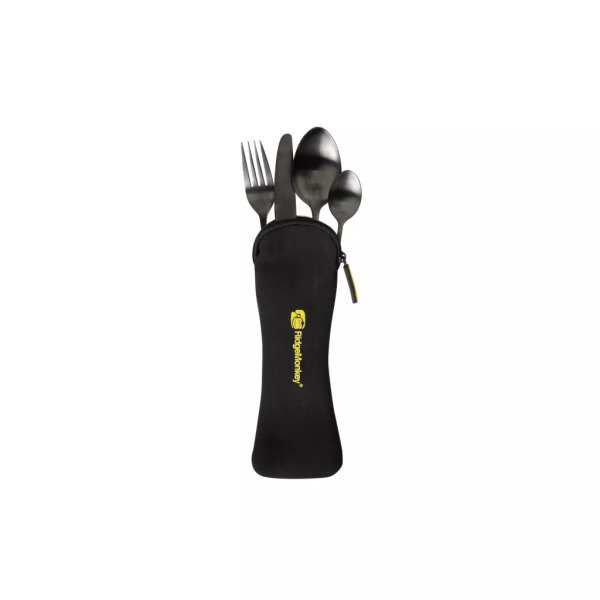 Das Besteck ist mit einer anodisierten, kratzfesten Beschichtung versehen und wird in einer Neoprentasche geliefert.