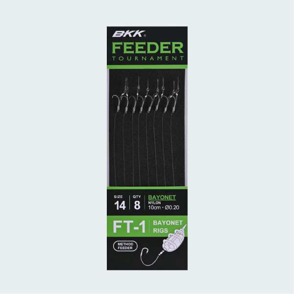 Die BKK FTB-1 Feeder-Turnier-Rigs sind eine Serie von Vorfächern, die für sofortiges Eindringen und maximale Stärke beim Angeln auf große Fische mit dem Futterkorb entwickelt wurden.
