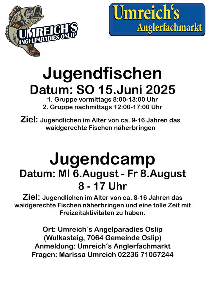 Tageskarten sind ab März für Mittwoch-Sonntag zum Preis von € 25,- im Angelparadies oder in Umreich's Anglerfachmarkt unter Vorlage einer burgenländischen Fischereikarte erhältlich!